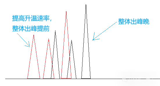 1.根据整体出峰时间调整升温速率,如果整体出峰很早,可以降低升温速率,如果整体出峰比较晚,那就可以提高升温速率。